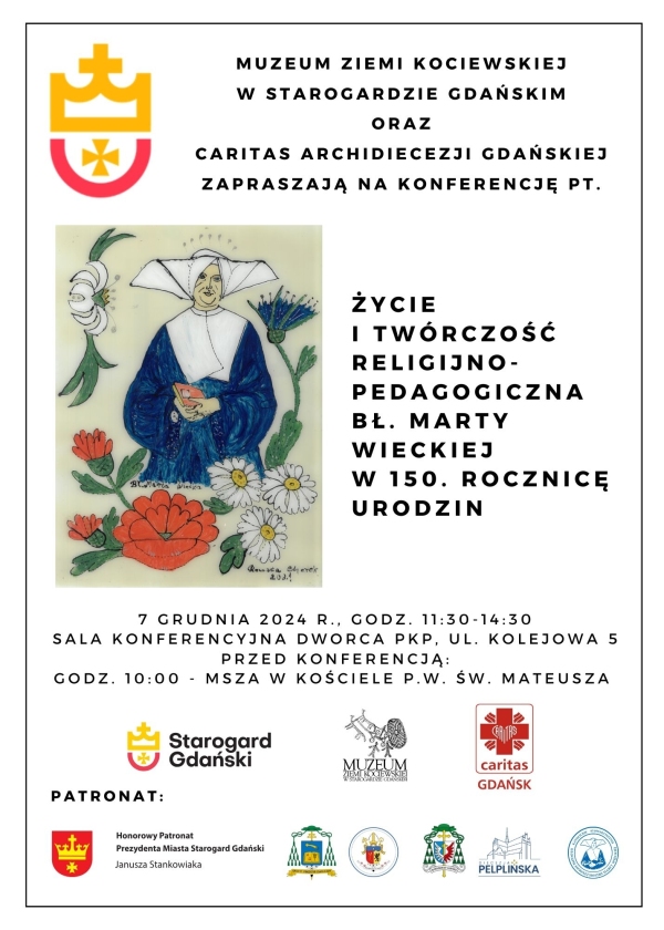 Celem wydarzenia jest przybliżenie szerszemu audytorium postaci bł. Marty Wieckiej, pochodzącej z nieodległego od Starogardu Gdańskiego Nowego Wieca, szczególnie przez pryzmat jej życia oraz dokonań religijno-pedagogicznych. Podczas konferencji wystąpią prelegenci, zajmujący się omawianą postacią od strony naukowej. Treść Twojej aktualności